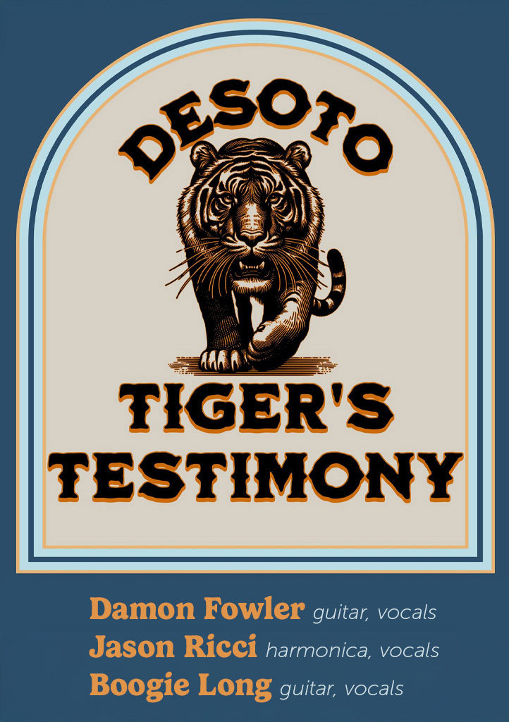 A powerhouse roots-blues supergroup takes the Palladium mainstage by storm when Desoto Tiger’s Testimony roars into town. This all-star trio features Damon Fowler (BMA-nominated guitarist & Palladium regular), Jason Ricci (four-time Blues Music Award-winning harmonica master), and Jonathan “Boogie” Long (Louisiana Music Hall of Fame inductee).