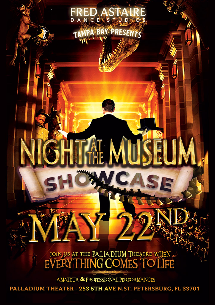You’ll want to be front and center to experience the passion of ballroom dancing in this year’s show, Night at the Museum. It’s a promise of an unforgettable evening that will leave you tapping your toes wanting to join in on the fun. Dancers of all ages will be performing many styles of dance featuring our professionals and amateurs alike. Please come join us for a wonderful evening of dance!